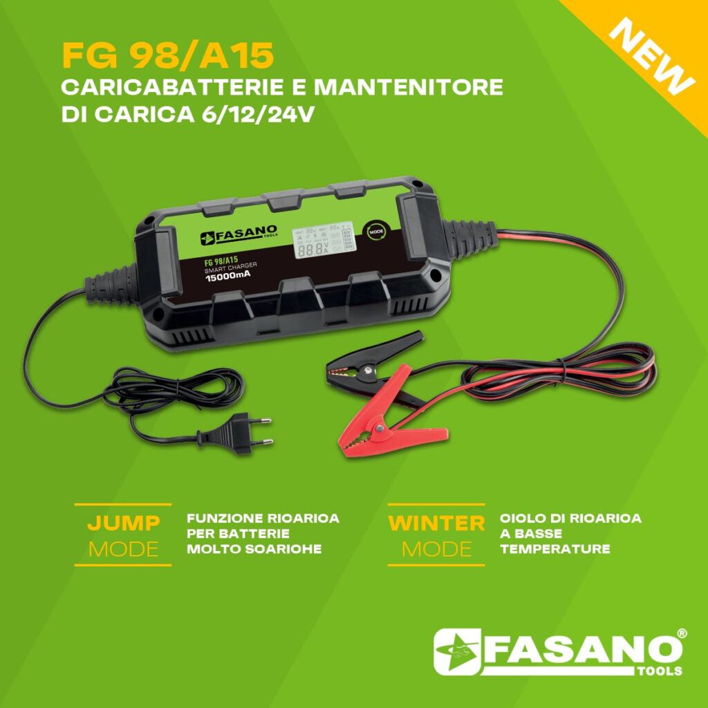Trovare la carica giusta non è mai stato così facile! Grazie caricabatterie “FG 98/A15” di Fasano Tools non dovrai più preoccuparti delle batterie scariche! Questo dispositivo è perfetto per una vasta gamma di veicoli, tra cui auto, moto, furgoni, barche e mezzi pesanti. Inoltre due novità: la funzione JUMP, ideale per le batterie estremamente scariche, e la modalità WINTER, che ottimizza la carica anche durante le fredde giornate invernali.