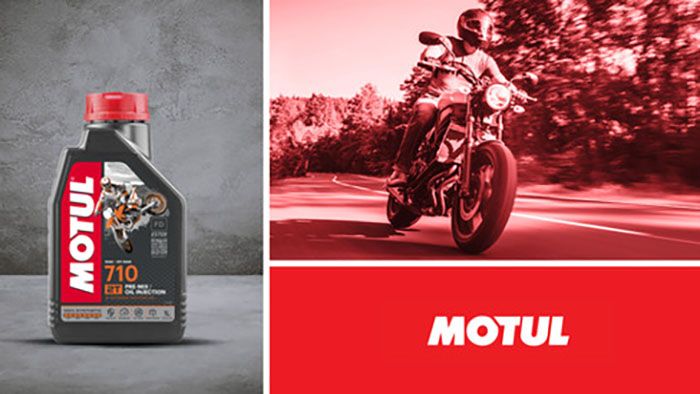 Motul consiglia 710 2T, un lubrificante ad alte prestazioni per motori a due tempi, ad iniezione o premiscela, la cui base sintetica ad alto potere di combustione riduce la formazione di fumo e depositi, mentre la tenuta del film lubrificante assicura un’ottima protezione anti usura.