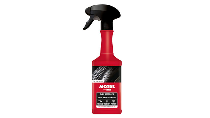 Motul Tire Restorer è utilizzato per ripristinare un colore nero intenso su pneumatici sbiaditi e scoloriti e per ravvivare l’aspetto di modanature opache, finiture in vinile e gomma. A differenza di un lucidante per pneumatici, questo prodotto non lascia un aspetto grasso, può essere applicato sul battistrada senza rischio di perdita di aderenza, previene la fragilità del pneumatico, rigonfiamenti e crepe e protegge il pneumatico dai raggi UV. Inoltre, la sua formula in gel antigoccia naturale al 99% non danneggia i cerchioni, la vernice, i metalli, la plastica o la gomma e fornisce un trattamento di lunga durata (1 settimana sullo pneumatico con tempo asciutto).